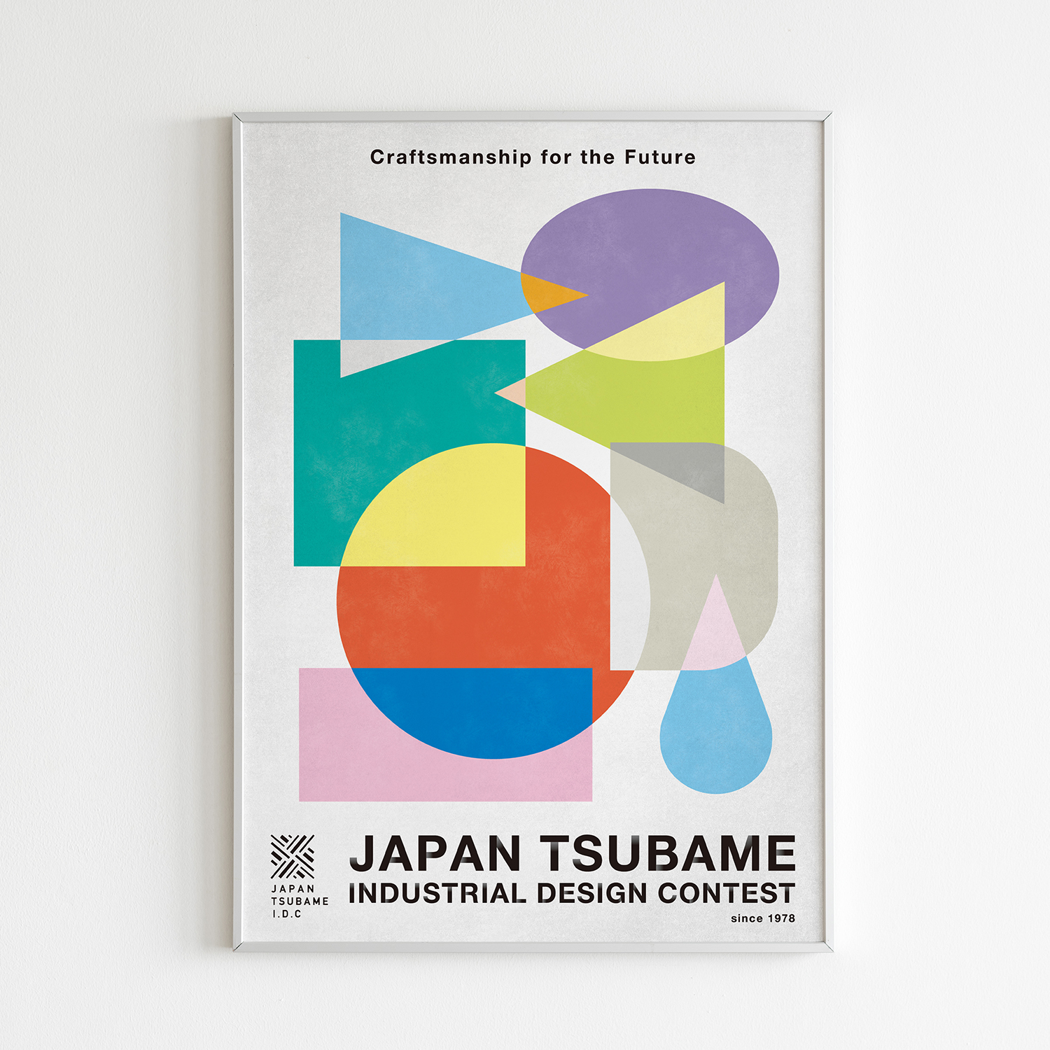 Client:新潟県燕市物産見本市協会 ポスターデザイン 燕市で毎年行われているジャパン・ツバメ・インダストリアルデザインコンクールのイメージポスターデザイン。 燕という産地の多層的な関係性を、幾何学的なシェイプの重なりとして表現。 それらが互いに干渉し、重なり、共鳴することで、多彩なプロダクトが生まれる。産地の確かな技術と個性が響き合い、新たな価値を生み出していく。燕の産業を未来へとつなぐビジュアル。