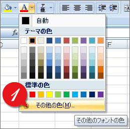 1.Excel(Word)を開き、文字色等を選ぶところで「その他の色」をクリック。
