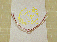 (2)で作った水引をロゴの下に工作用ボンドで留め、乾燥するまで置いておきます。