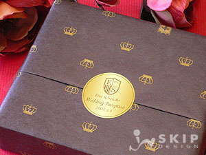 誰でも手軽にウエディングロゴマークを使えるシール。招待状や引出物、プチギフトなど、結婚式のいろいろなシーンで役立つ便利なオプションです。