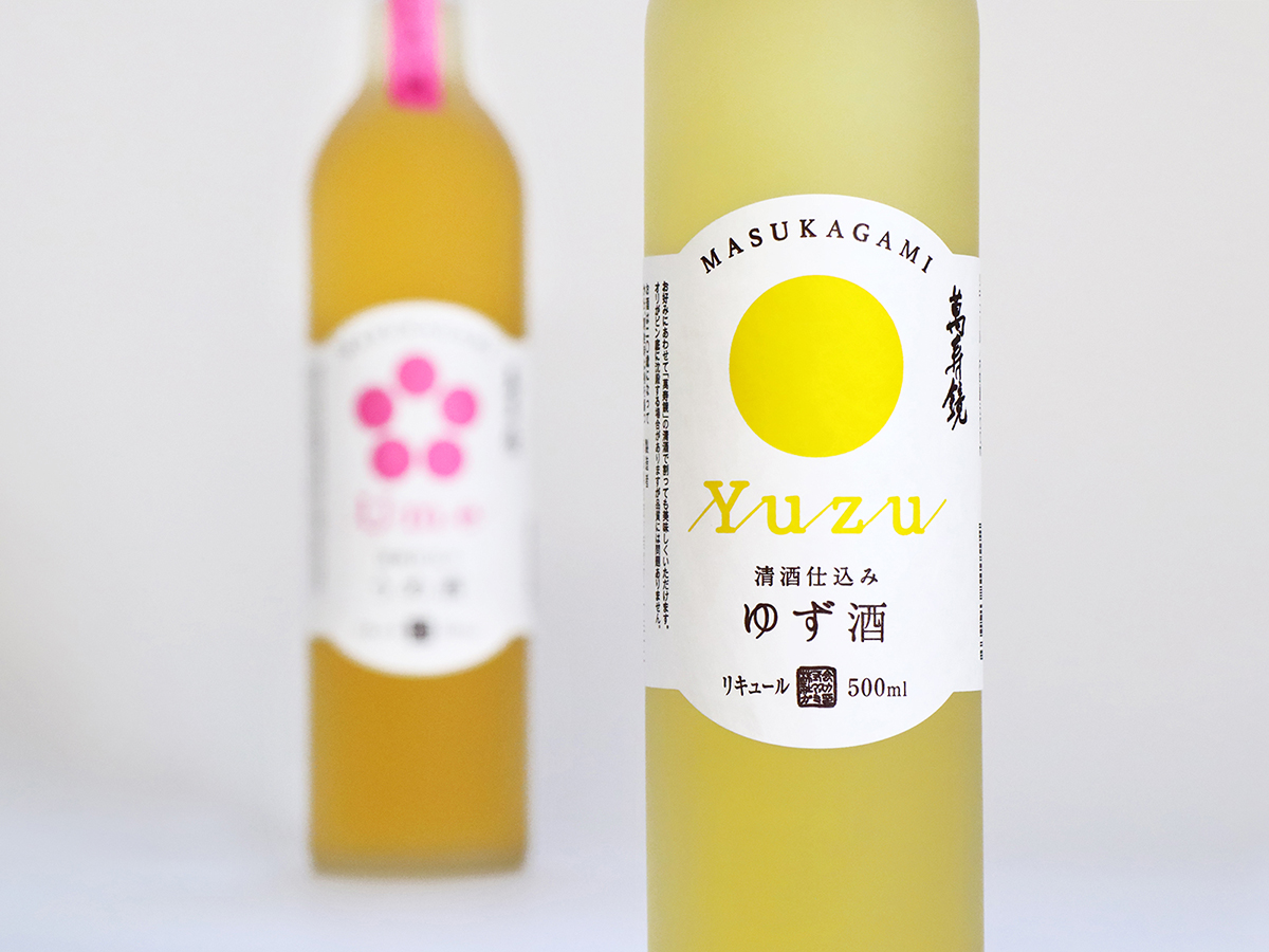 加茂市(株)マスカガミ様の[ 萬寿鏡 ゆず酒・うめ酒]のパッケージデザインをさせていただきました。